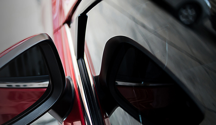 研磨により健全化したガラス表面にミクロで強固な透明の鏡面状被膜を形成し、透過する光の屈折を抑えて”ギラツキ”を防ぎ、水滴が表面張力より丸くなることで、結果として撥水します。